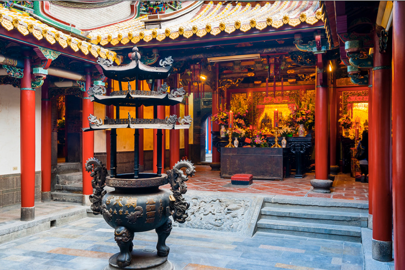 朝天宮「三川殿」曾於清光緒二十年毀於火,現物為民國元年由名匠陳應彬所建。