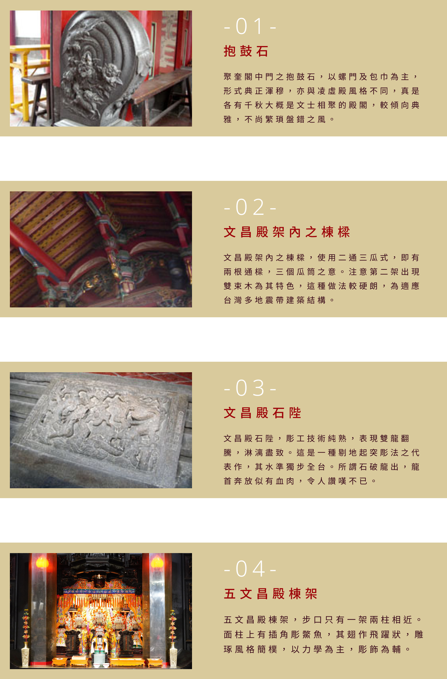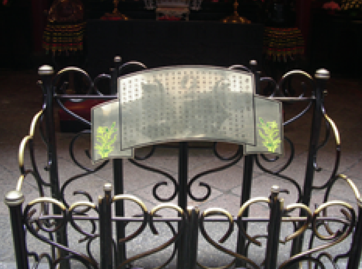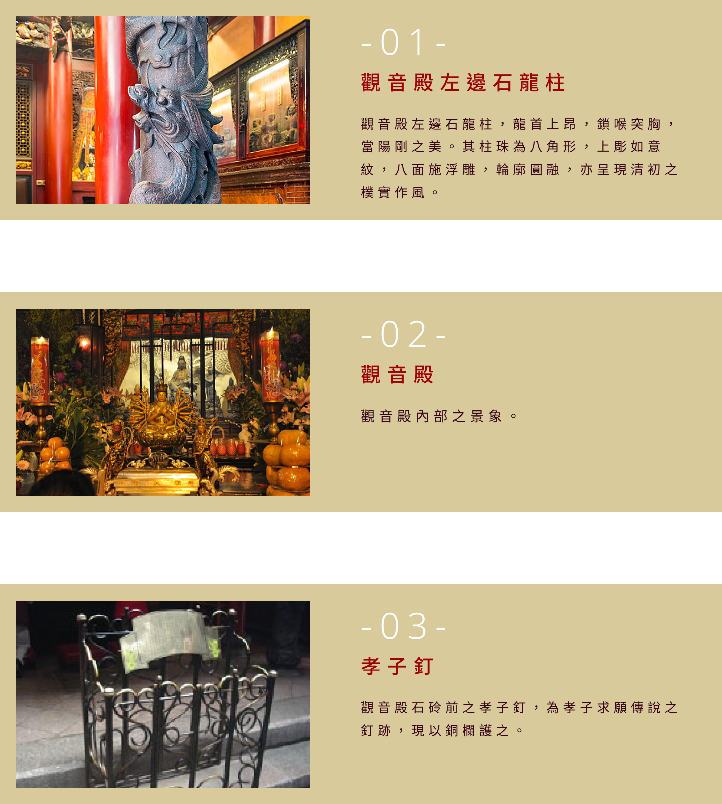 在全台寺廟的無數龍柱之中,能見到年代落款者並非很多,但是能刻上一幅掛軸圖形銘記年代者應為孤品,深具歷史價值。