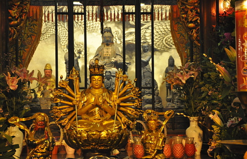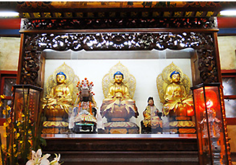 主神:觀音佛祖配祀:善才、良女,左右兩側供奉十八羅漢。